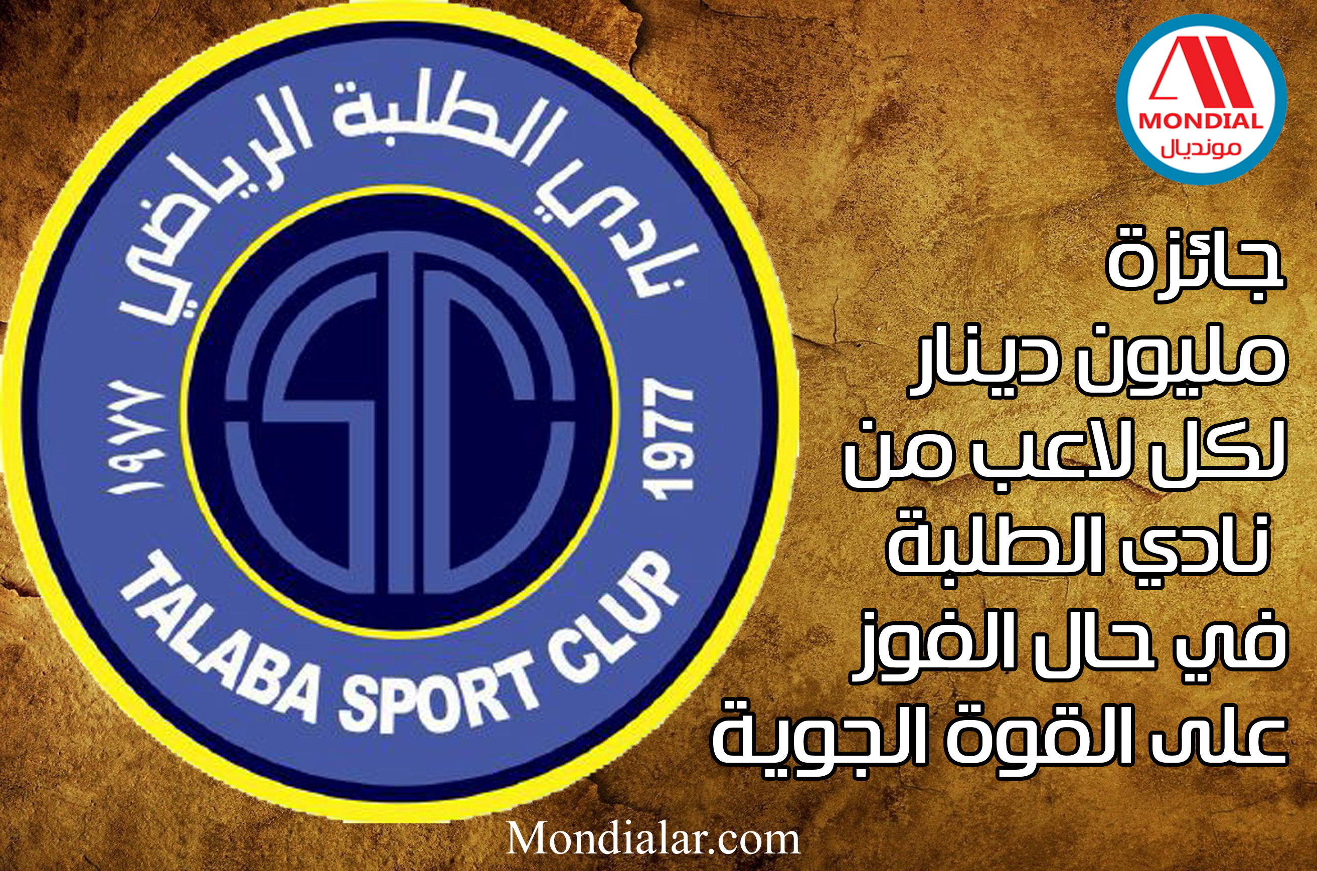 جائزة مليون دينار لكل لاعب من نادي الطلبة في حال الفوز على القوة الجوية