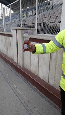 ضبطت قوة امن الملاعب قنينة فيها مشروبات كحولية بحوزة احد المشجعين في ملعب الشعب اليوم خلال مباراة الطلبة والكهرباء التي جرت عصر اليوم في اطار مباريات الدور الاخير من دوري الكرة الممتاز.